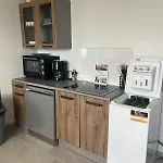عزز إقامتك بالمطبخ المجهز المجهز بالغلاية الكهربائية وثلاجة وأدوات المطبخ لراحتك في الشقة.
